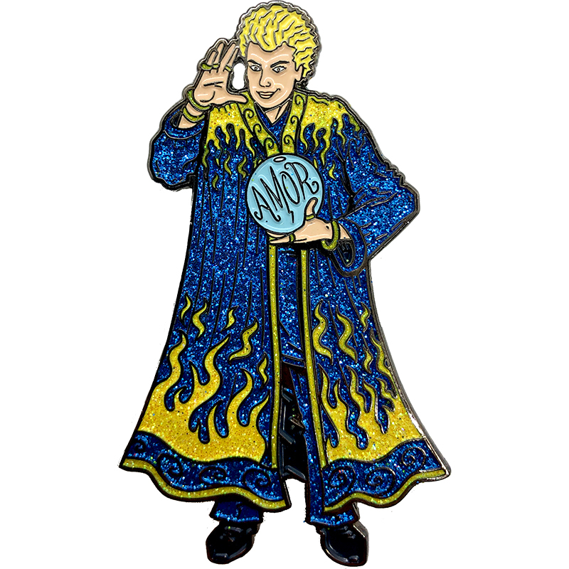 You're favorite Brujo fortune teller in a 3" blue & gold glitter pin!