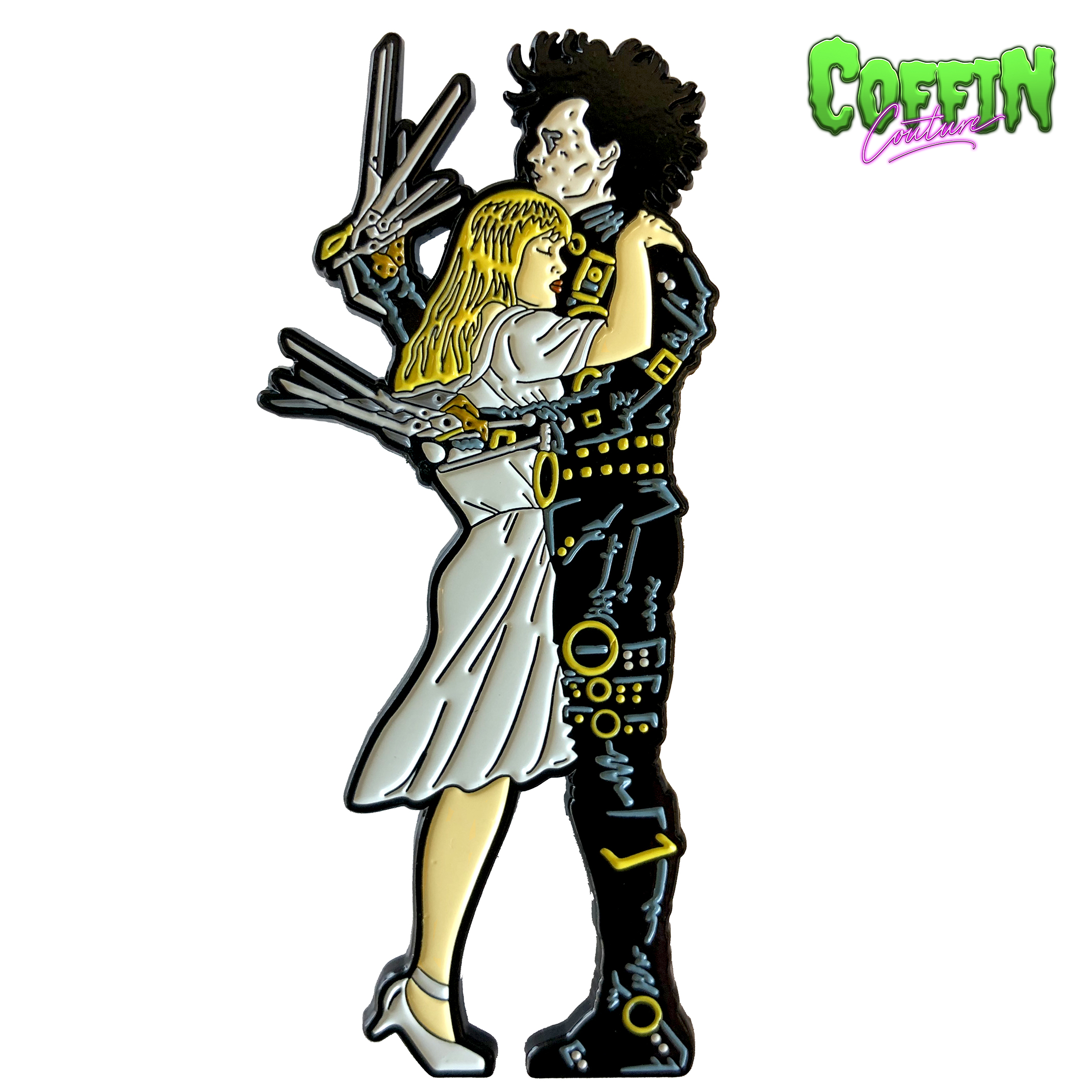 Be weird and be happy with your own Kim & Edward Scissorhands pin. Designed on a 3" metal lapel pin by me, MrMauro. Celebrate true love against all odds.