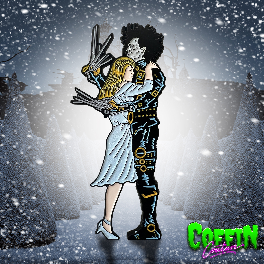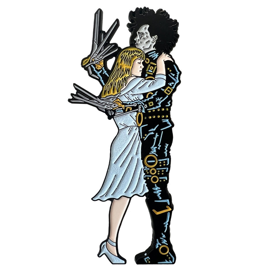 New 3" Edward Scissorhands & Kim Boggs glitter enamel pin.