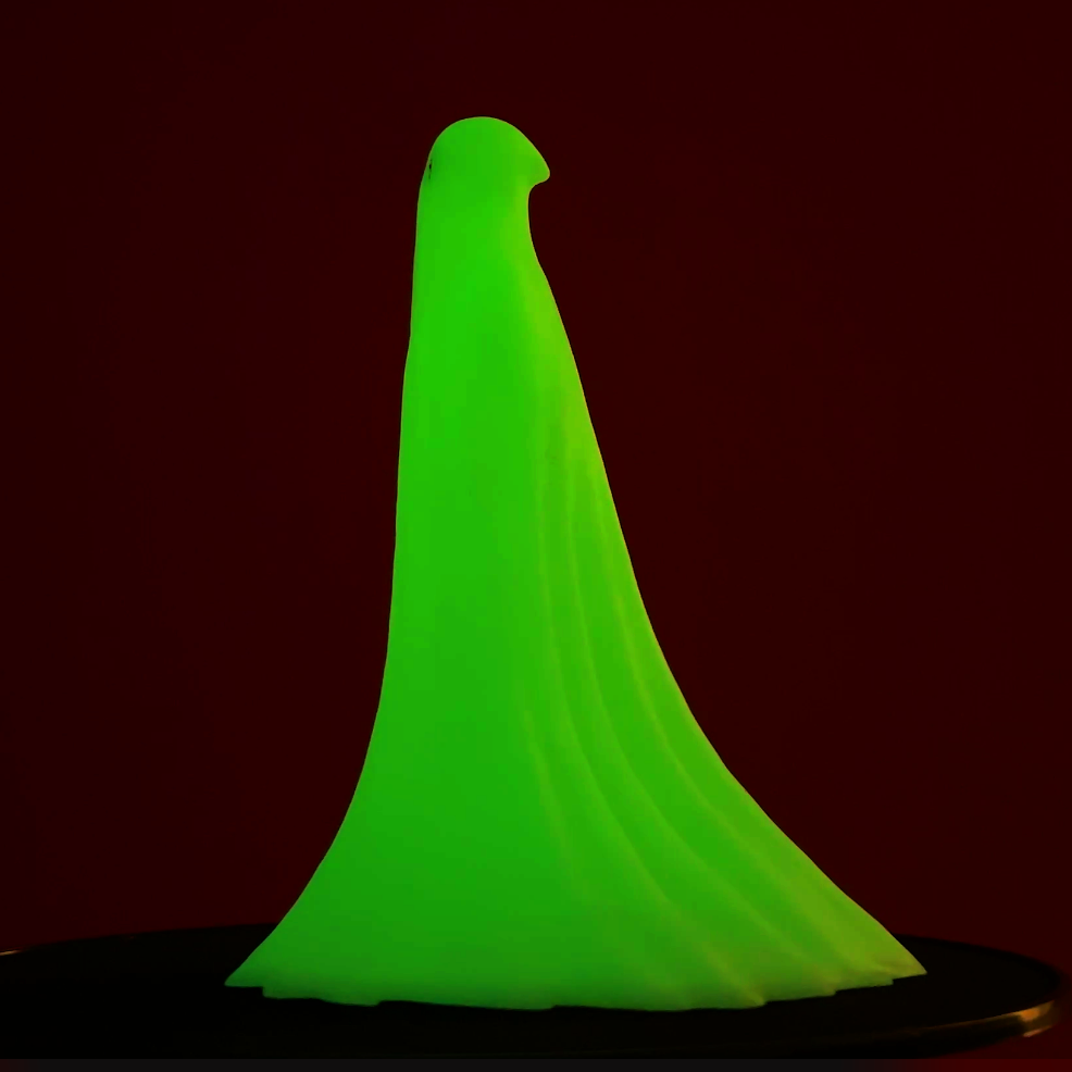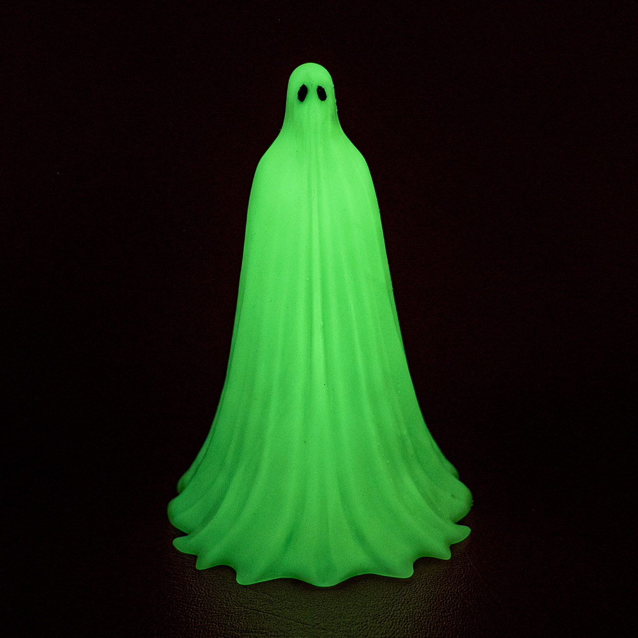 Every Ghost is personally 3D printed, hand-painted, and one-of-a-kind—no two are ever exactly alike. Expose the glow editions to sunlight or a UV flashlight to unleash their eerie green shine!