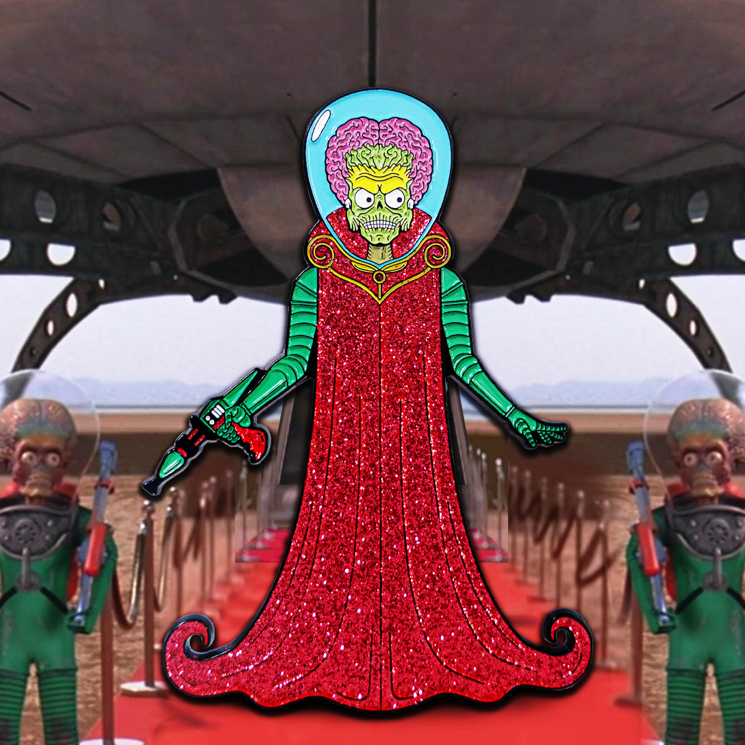 Updated, bigger and shinier version of my long sold out Martian pin. This new iteration is 3.5" tall, with better details, color and new red glitter.
