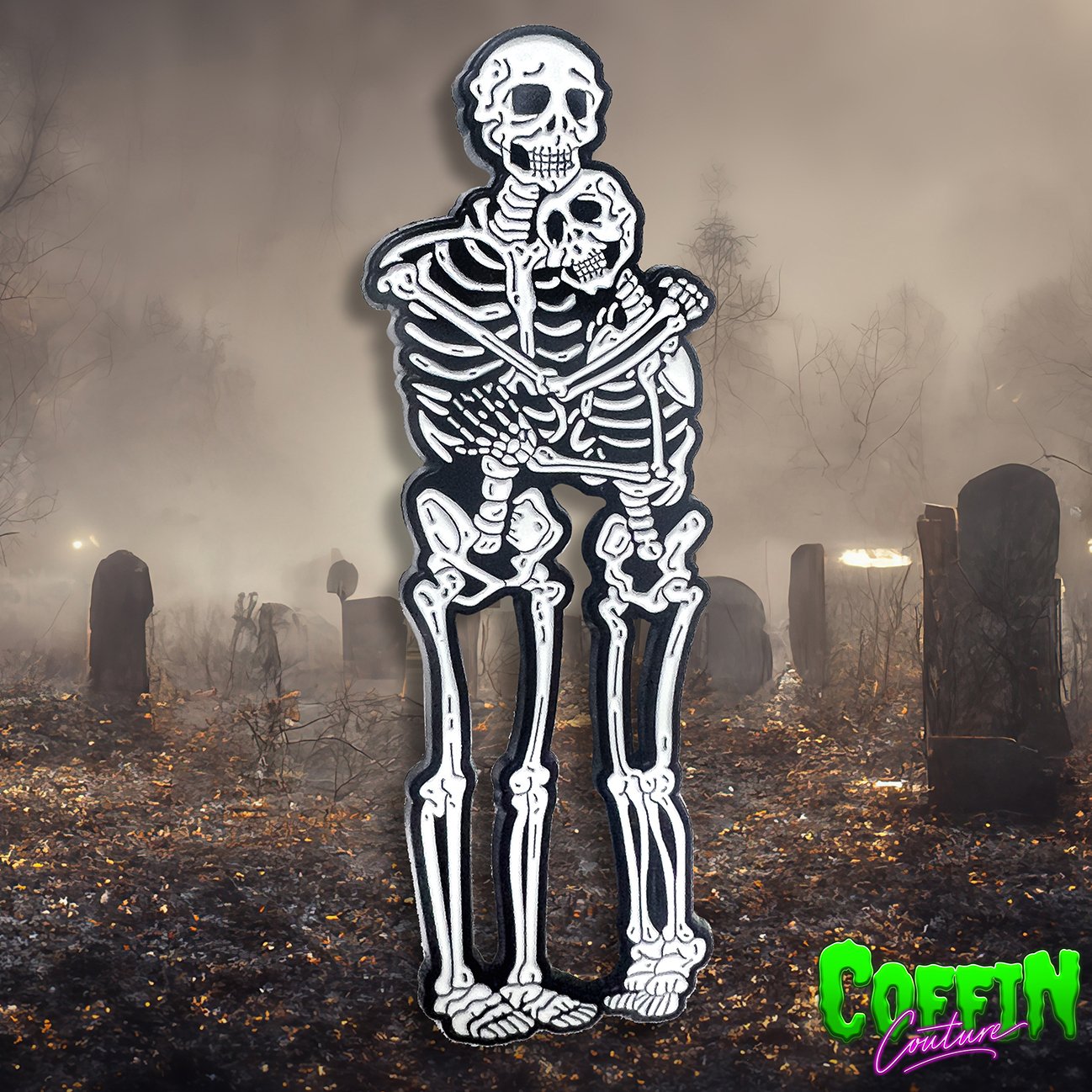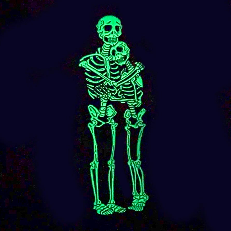 Updated, 3.5" tall, metal pin with glow in the dark enamel paint.