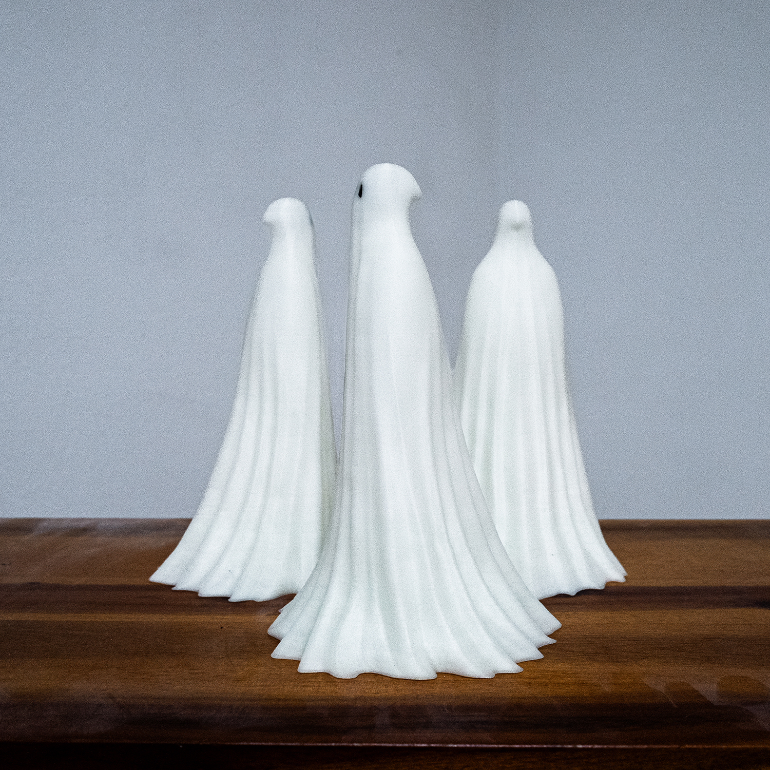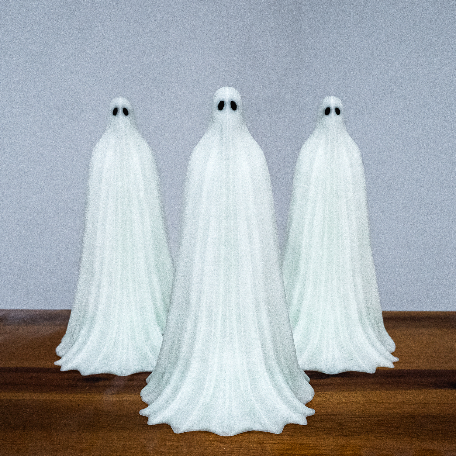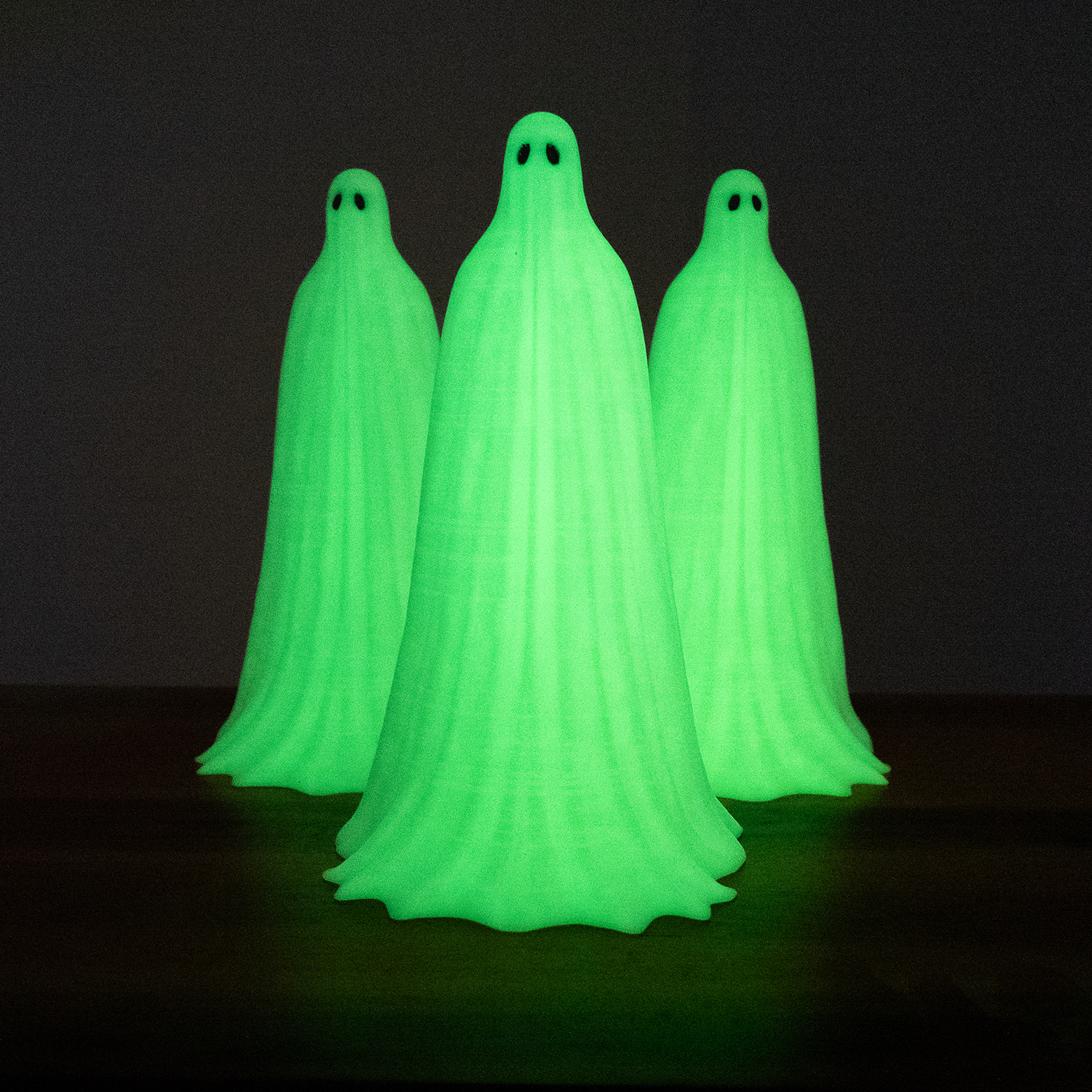 This updated version is printed in solid, and super bright, glow in the dark PLA plastic with hand painted eyes.